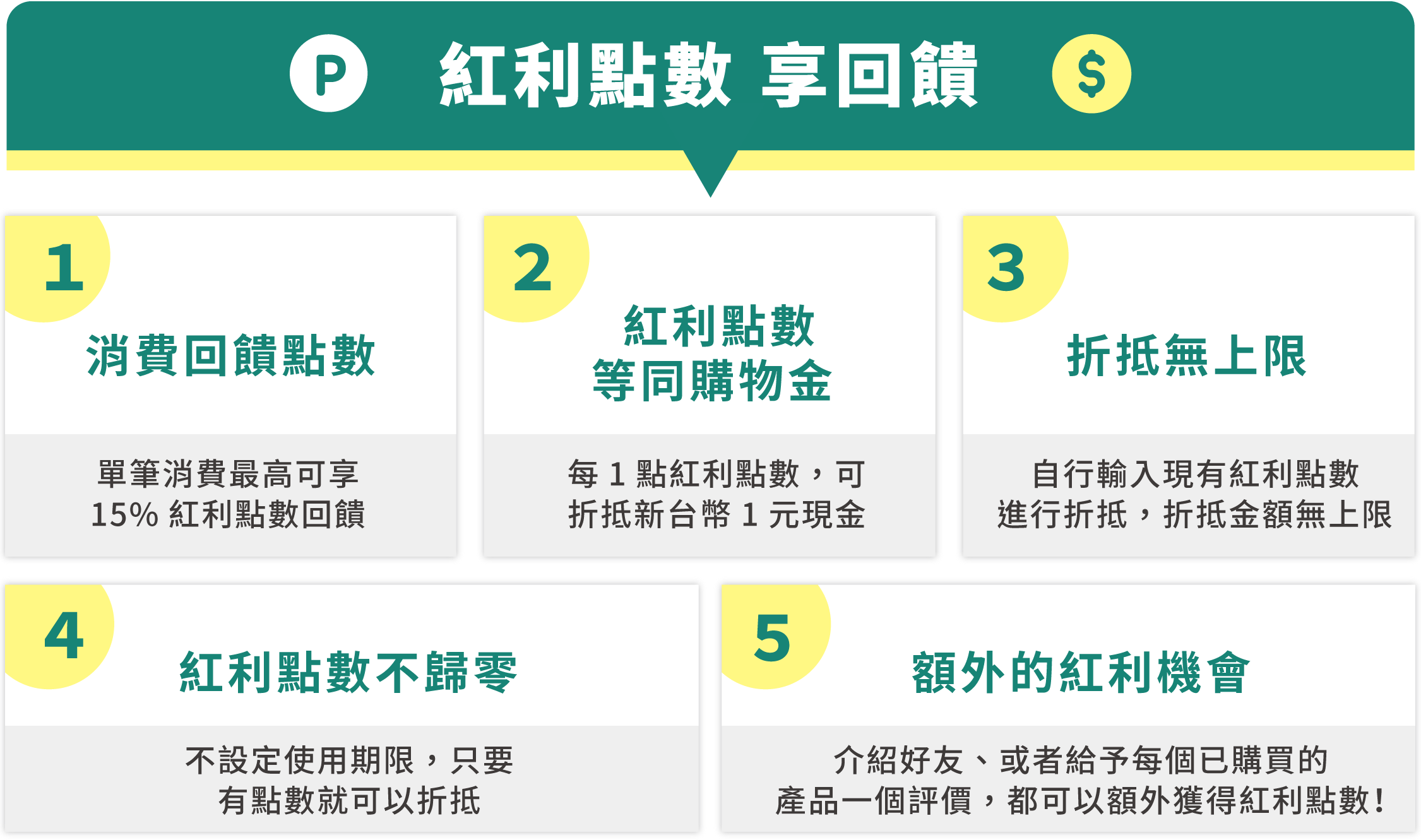 會員升級制度、紅利點數回饋、折價券折抵、翻查訂單狀況及紀錄、儲存送貨地址、獨家電子報優惠及更多服務。