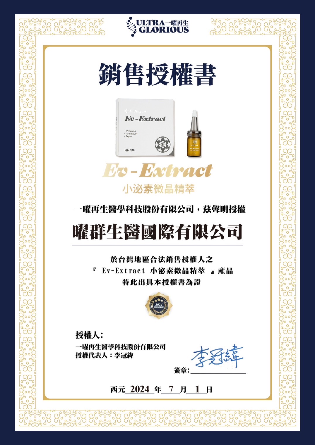 | 製造商名稱 | 一曜再生醫學科技股份有限公司 |