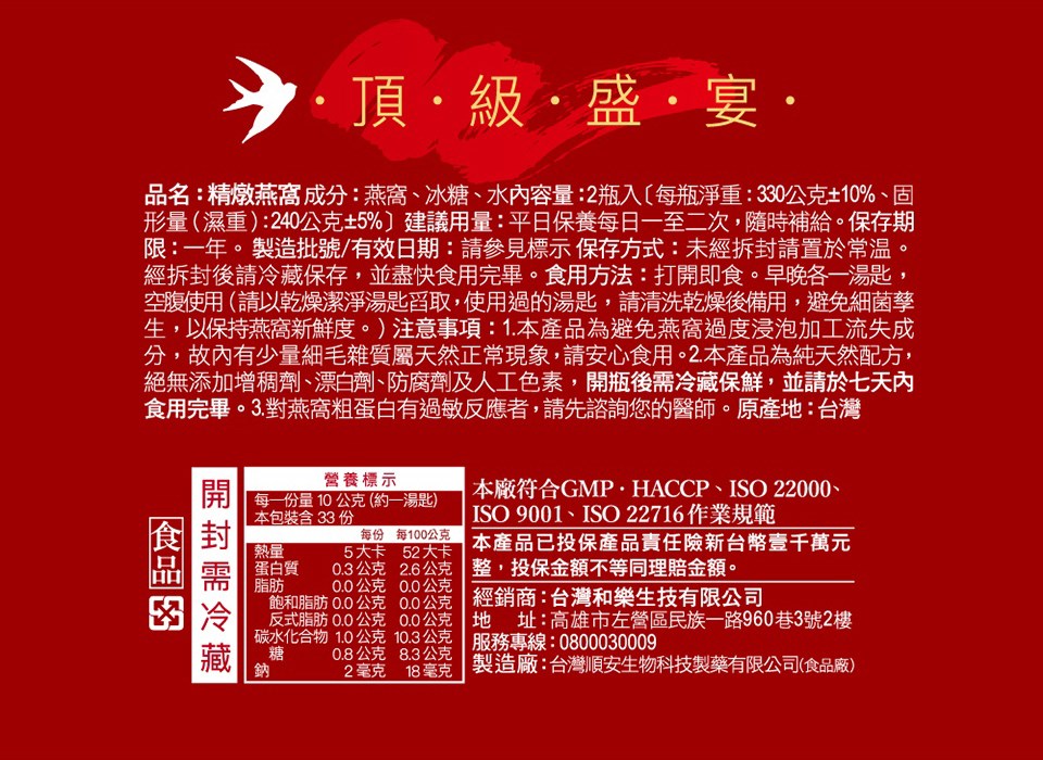 | 商品成份 | 燕窩、冰糖、水 |
